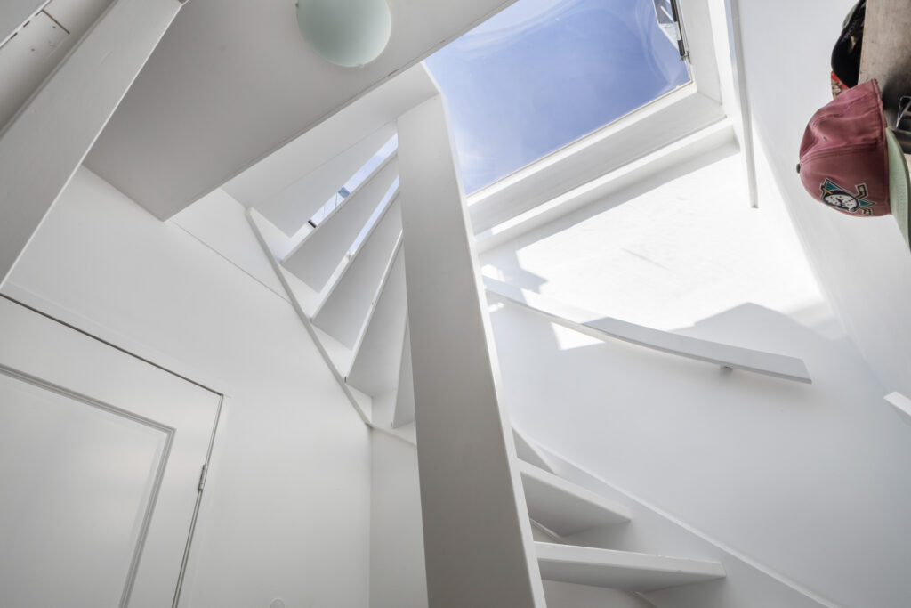 Dan de extra plus van dit appartement: een super dakterras te bereiken via een goed beloopbare trap. Via een grote koepel kom je op het terras, het goede van deze koepel is ook het extra licht in je woning, heel prettig ! Het dakterras heeft een mooi formaat om er te zitten en te eten, door dat je boven op het dak zit heb je de hele dag zon en een mooi zicht op de omgeving.