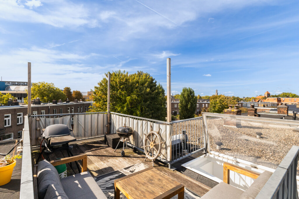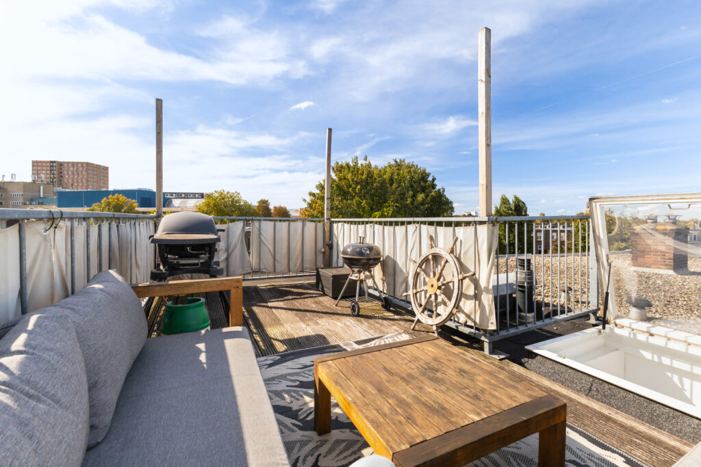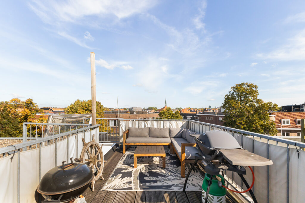 Kortom LEEF EN GENIET in deze leuke bovenwoning met super dakterras.