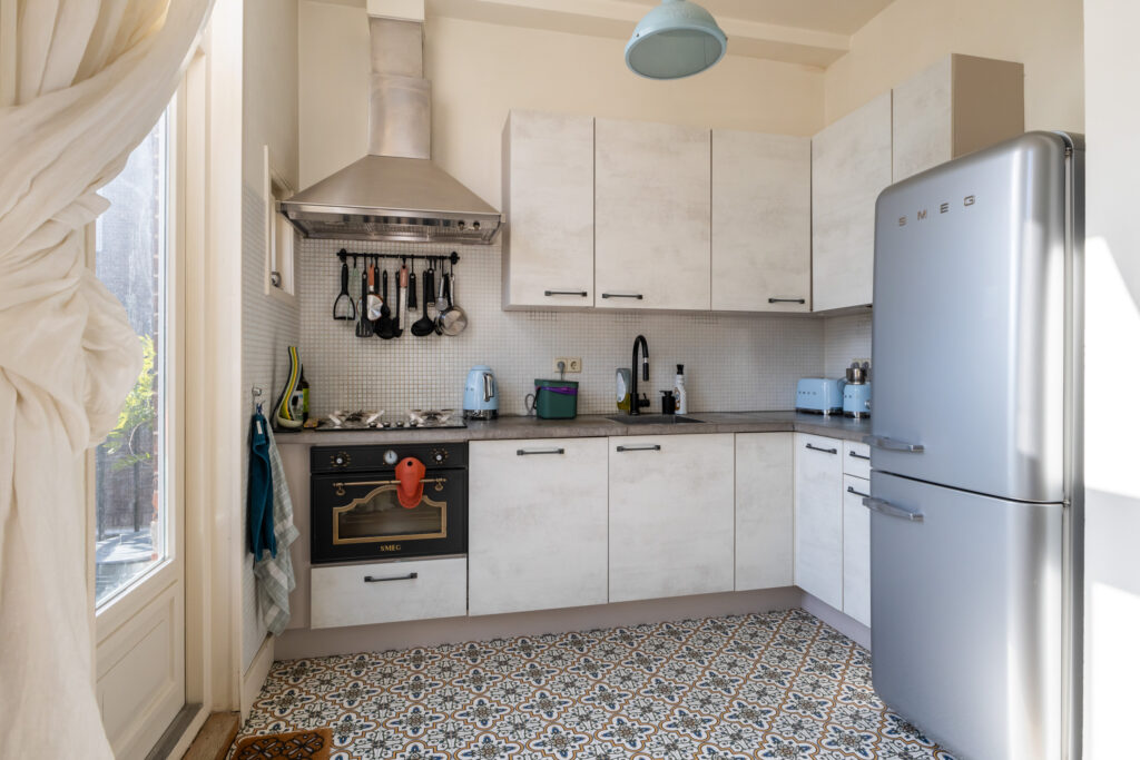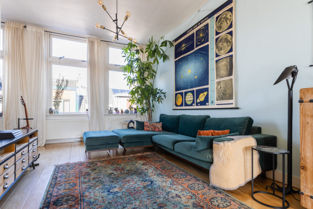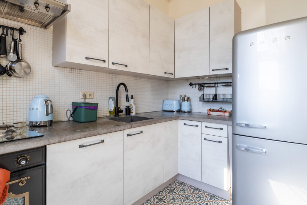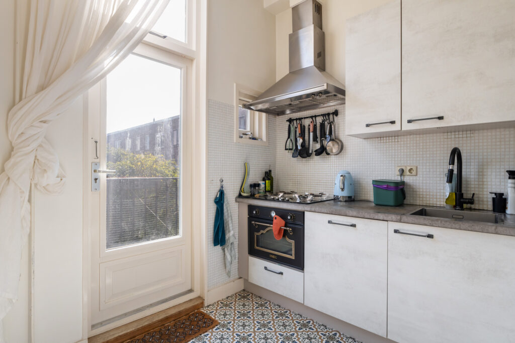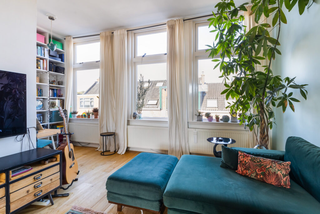 Hier voel je je direct thuis. De ruime woonkamer heeft een fijne lichtinval en biedt voldoende plek voor een comfortabele zithoek. Aan de achterzijde bevindt zich de sfeervolle eetkeuken, perfect voor gezellige diners met vrienden of familie. Via de openslaande deuren bereik je het zonnige balkon op het zuidoosten, waar je heerlijk kunt genieten van de ochtend- en middagzon.