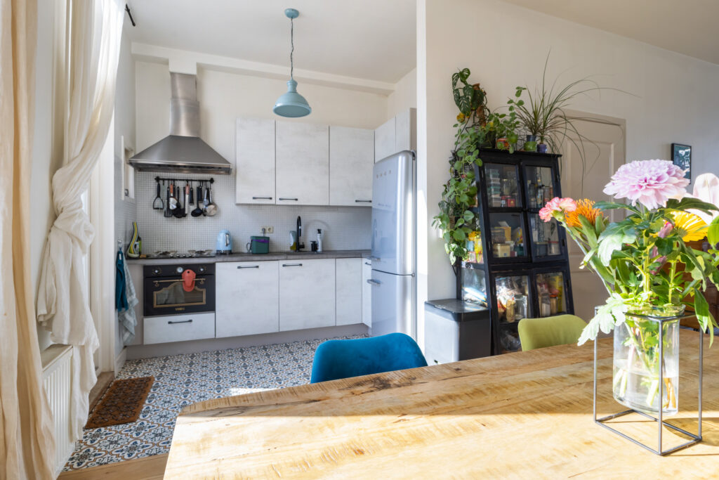 – Sfeervolle woonkamer en eetkeuken.