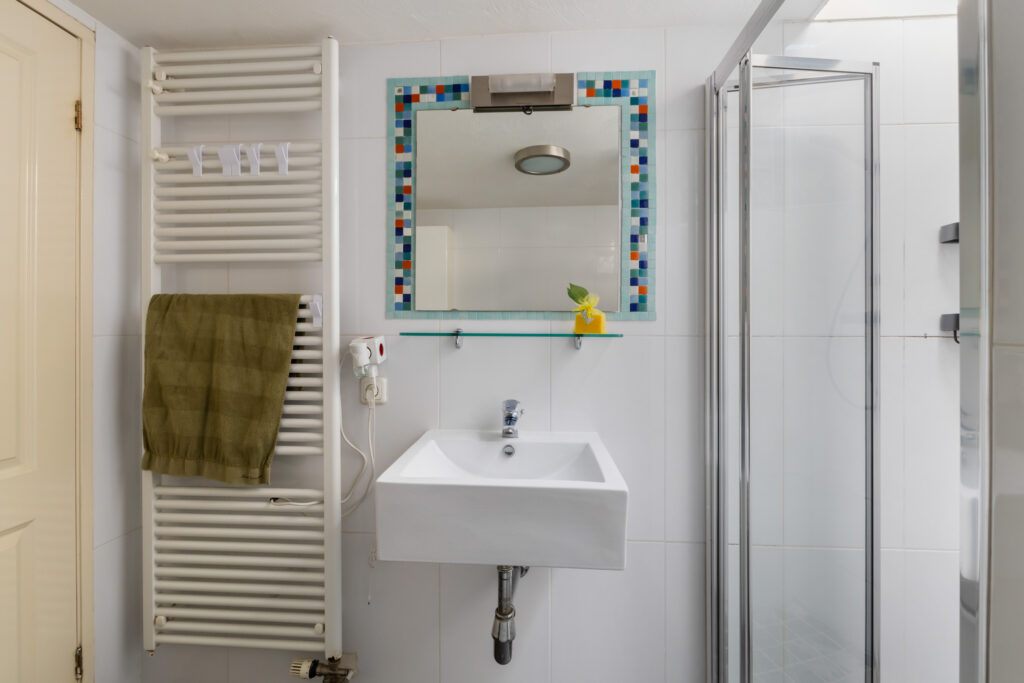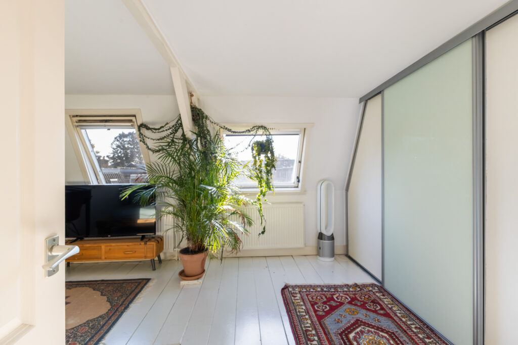 De bovenste verdieping biedt twee ruime slaapkamers, ideaal voor een stel, gezin of om één kamer als werkkamer te gebruiken. Verder is er een praktische waskast en een nette badkamer met ligbad, aparte douche, toilet en wastafel met meubel – alles wat je nodig hebt voor comfort en gemak.