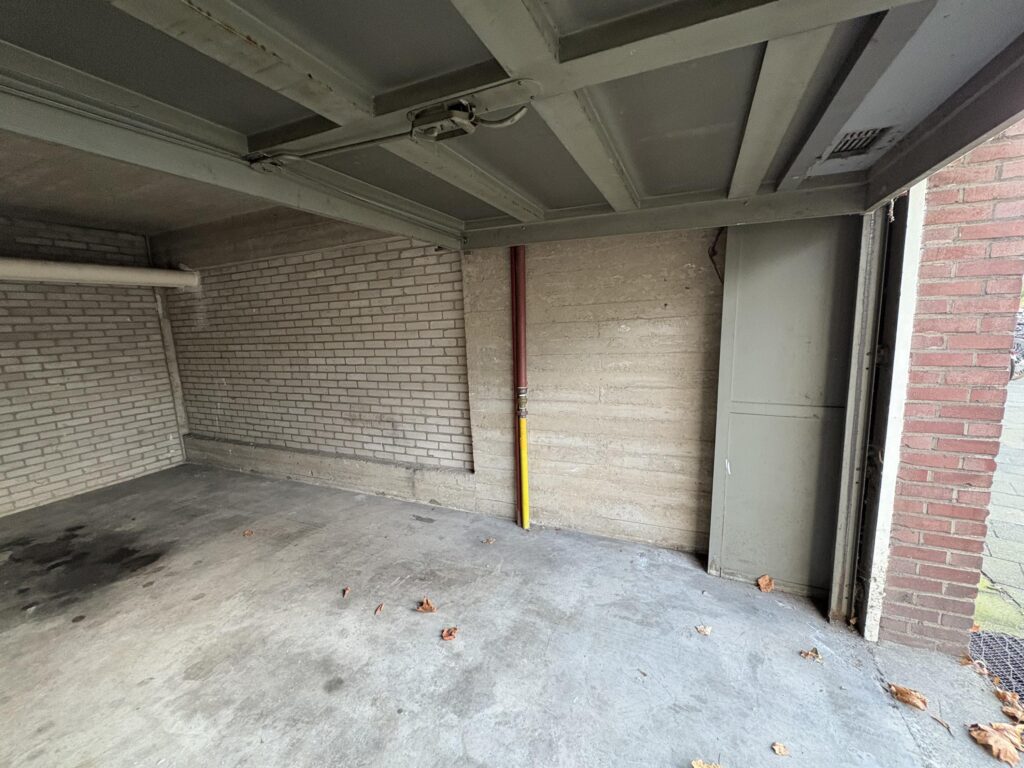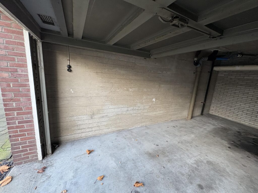 De garage biedt verrassend veel ruimte: met een totale lengte van bijna 6 meter, een brede achterzijde en een plafondhoogte van ruim 2,4 meter kun je er niet alleen een auto parkeren, maar ook extra spullen opslaan of stallen. De aanwezige elektra (lamp en stopcontact) maakt het gebruik extra comfortabel en biedt de mogelijkheid om verlichting of gereedschap aan te sluiten.