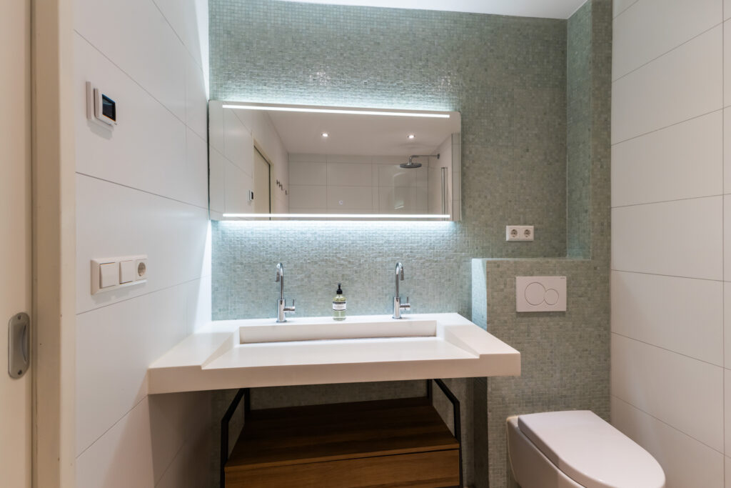 De overloop geeft toegang tot twee ruime slaapkamers aan de voor- en achterzijde. De moderne badkamer is voorzien van een ligbad met douche, een dubbel wastafelmeubel, een tweede toilet en vloerverwarming.